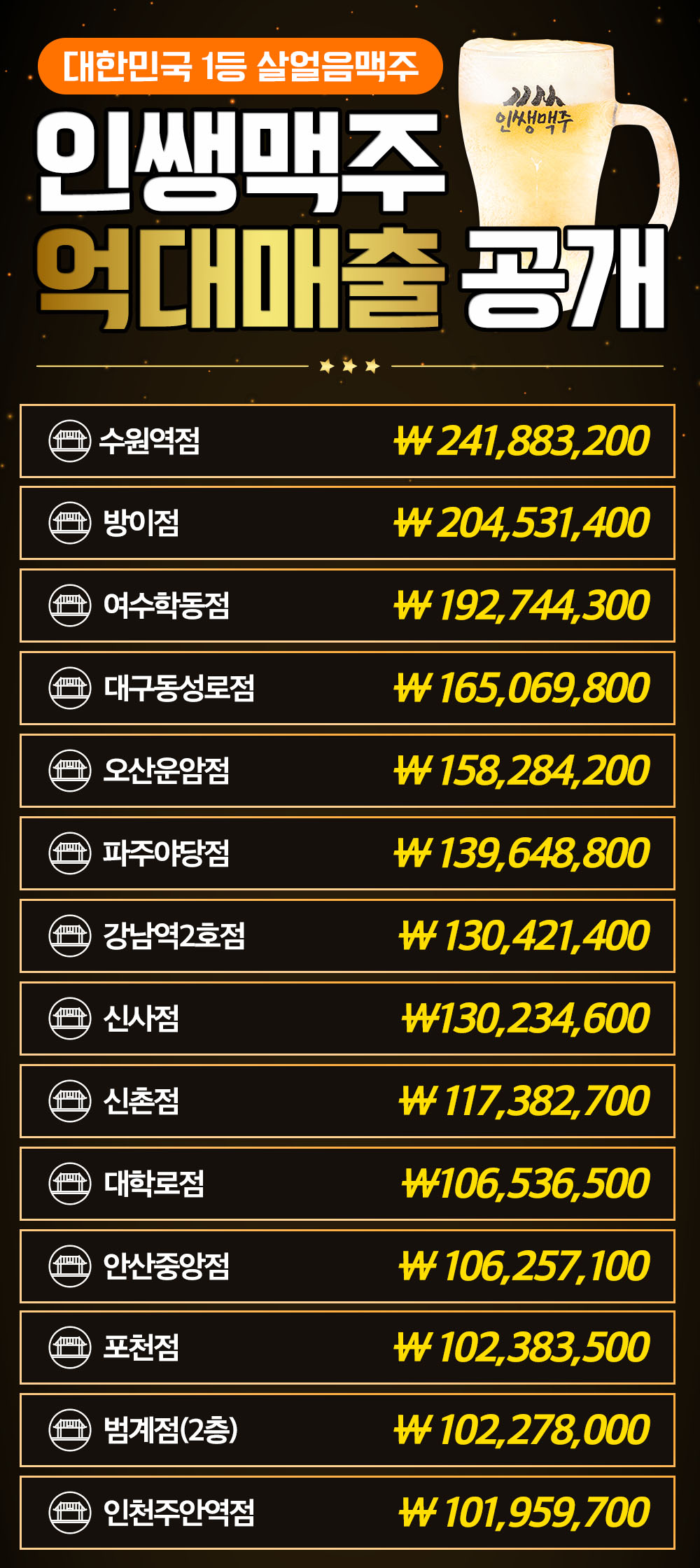 인쌩맥주의 브랜드 파워, 매출이 증명합니다.